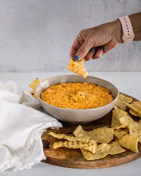 This week I am sharing some of our favorites for game day. I don’t know if you are a huge fan football like we are, but we love watching football on Sundays. We are starting the week with a top favorite of ours…buffalo chicken dip. Buffalo chicken dip is a must have for football season. We usually do it a few Sundays during football season and we definitely do it for the Super Bowl.