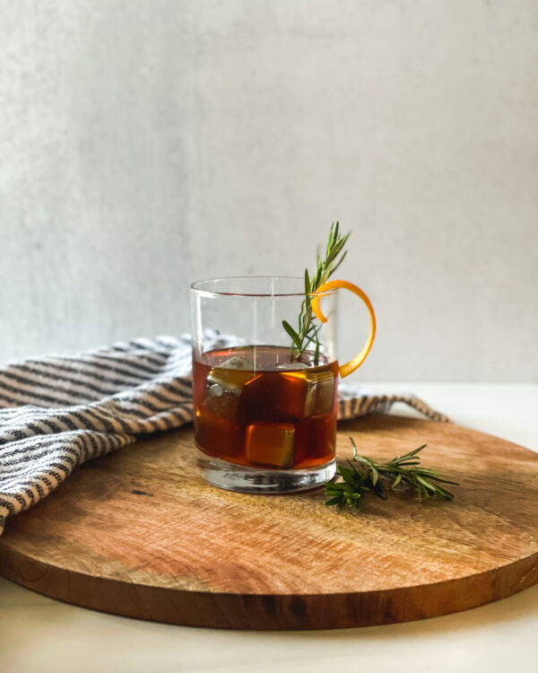 I decided that the first cocktail I would make in the new year in our new house would be a bourbon drink. Since bourbon is a favorite of ours. This bourbon drink is delicious. It has a hint of maple, cinnamon, orange and rosemary. It just a nice drink to sip on while watching tv.