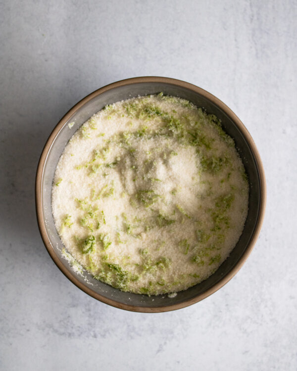 Make sure to zest the lime into the sugar. Mix with a fork or whisk. This really makes the flavor of the lime standout.