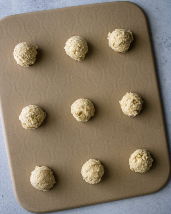 - Scoop dough onto prepared cookie sheets and bake for 12 minutes or until done.
