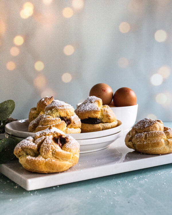 About 5 years ago, my mother in law was on a hunt for cream puffs for Christmas breakfast. In fact she made Jimmy and I go to different stores to find them. After we got home, she told me I had to learn to make them. So sure enough I learned to make them. They weren’t as hard to make them as I thought they would be.