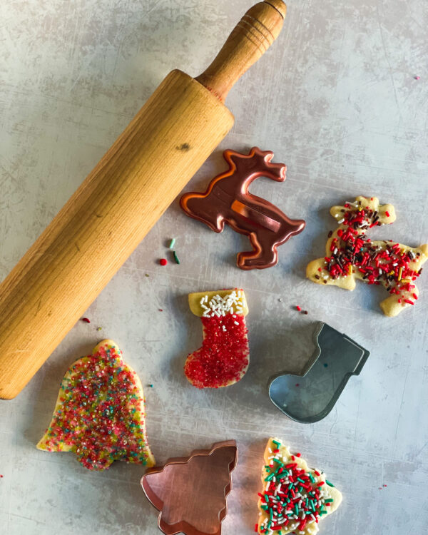 Cutout cookies are my favorite cookie. These cookies have so many memories for me. I remember standing on a chair and making these cookies with my mom. My favorite part was always adding the jimmies and still my favorite part. In case you didn’t know, I have a love for jimmies and sprinkles.