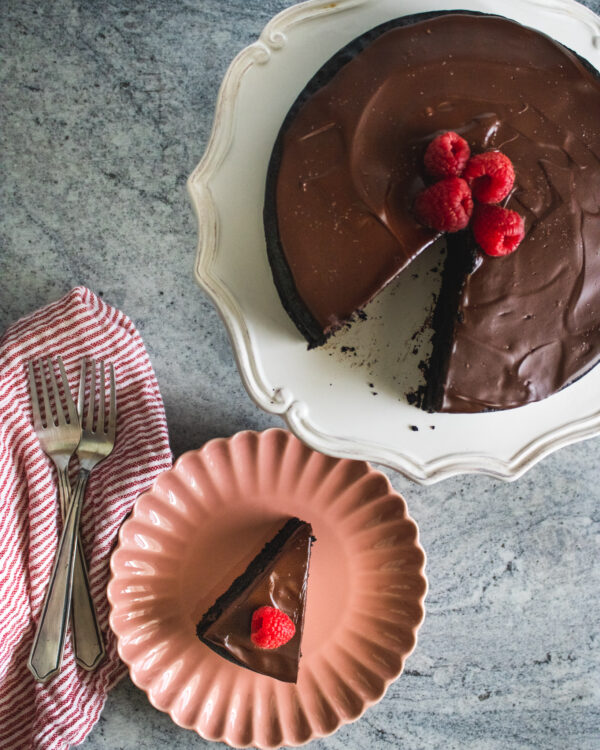 This cake is a flourless cake, which means you cocoa and chocolate to be a good quality. They are the star of the show. If you don’t know by now, I almost always use black cocoa. It really steps up the flavor in all things chocolate. If you can’t get black cocoa, make sure you use a good quality chocolate. BTW Amazon sell black cocoa.