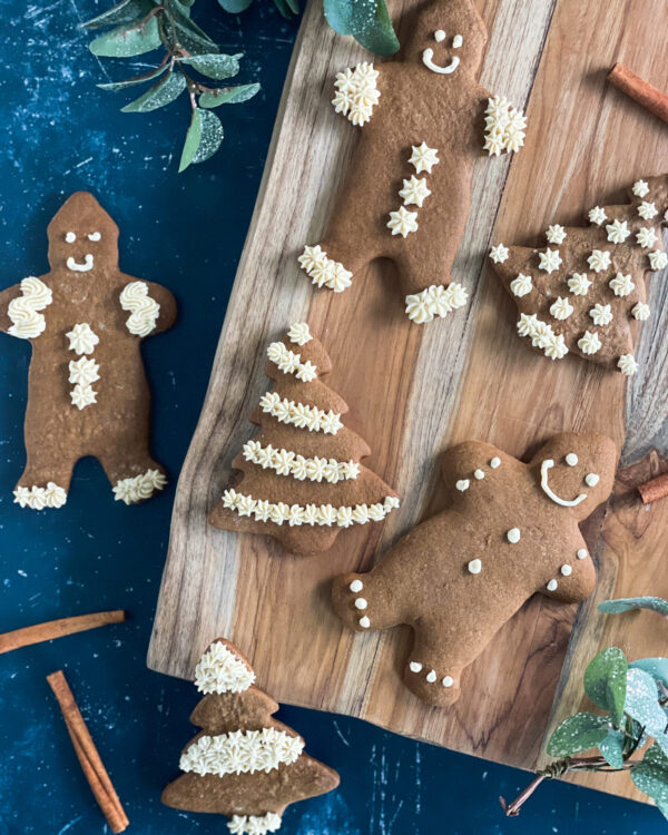When I made gingerbread cookies growing up, we always used raisins for the buttons and face. Now a days I make a cinnamon maple buttercream to decorate them. This buttercream is the perfect finishing touch for the cookies. You can choose to decorate the cookies how you wish. I know you will love these cookies as much as I do.