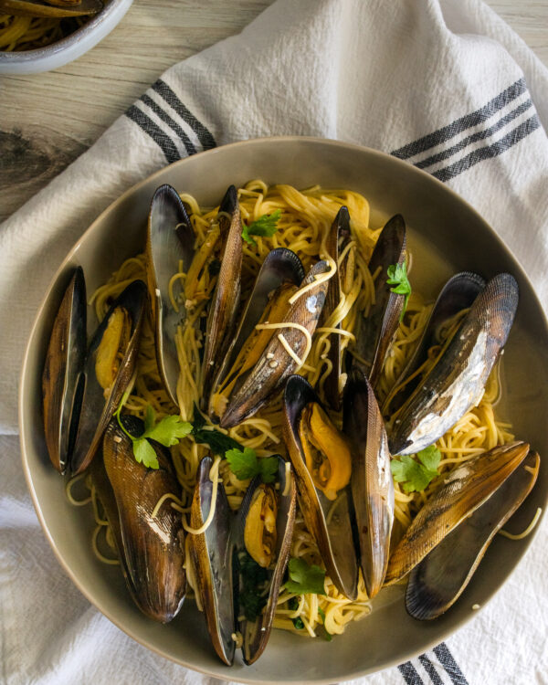 When Shell’em Seafood Co. was at our local farmer’s market with my seafood guy, I knew I had to get some mussels from her. First let’s talk about how fresh they were. I mean they were caught the day before, you can’t get more fresh than that. They were also clean for mussels too. Plus not one of my mussels was cracked or broken. They all were beautiful and cooked up so beautifully. I couldn’t wait to cook them.