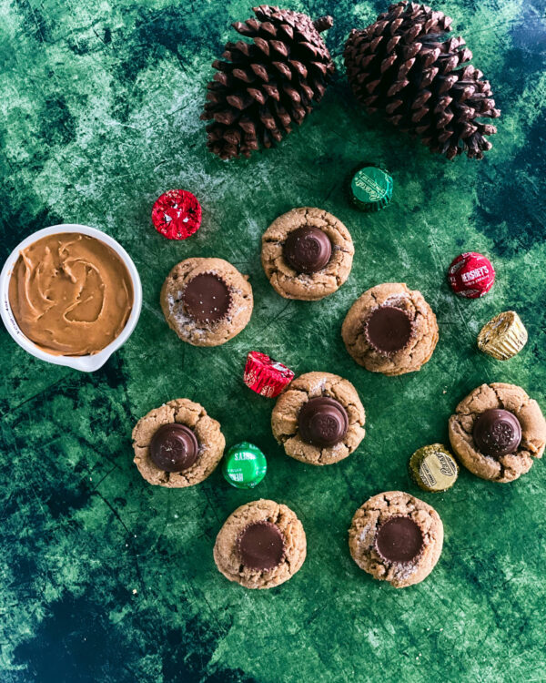 We are rounding out 12 Days of Christmas Cookies with a long time favorite, peanut blossoms. Growing up we always made them with Hershey Kisses. Now a days I top them with peanut butter cups, kisses or Hershey Bells. It all depends what I am in the mood for and what the store has. HaHa!!