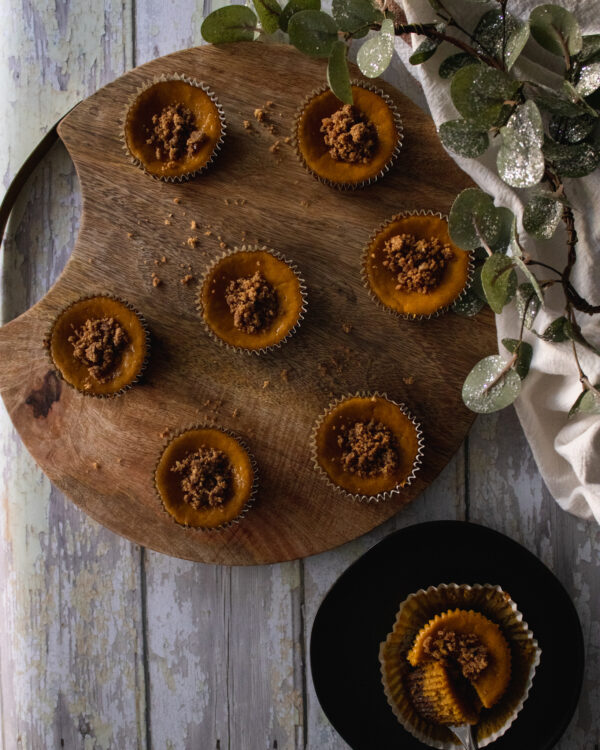 Growing up we always had so many options for dessert for Thanksgiving. As I got older and started baking more, one of my first recipes I came up with was pumpkin cheesecake. In past 7 years or so I changed pumpkin cheesecake into mini cheesecakes. While I love cheesecake, it just takes so much time to bake and requires a few extra steps. Plus mini cheesecakes are just easier to serve and just better in my book.