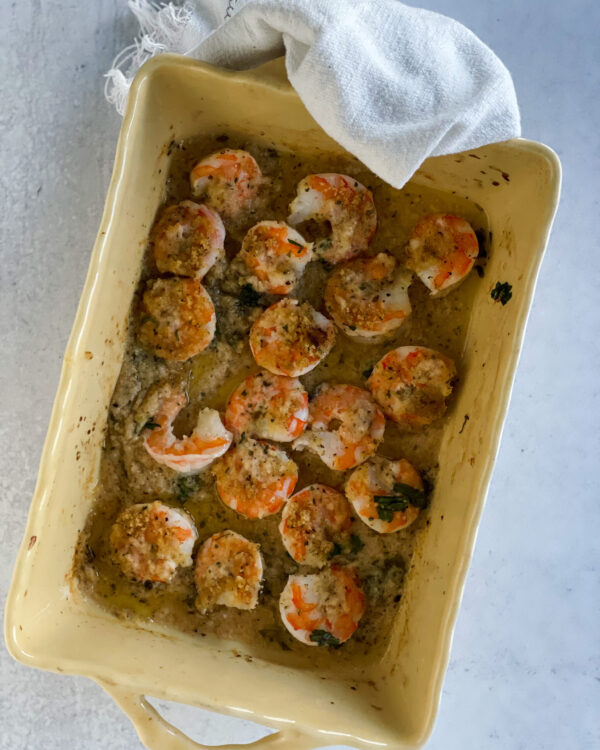 This dish is really easy to make. Peeling and deveining the shrimp takes the most time. Cooking shrimp doesn’t take long. I love the bread crumb topping. It adds the perfect touch.