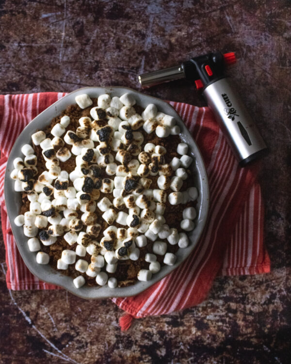- Add marshmallows and use a kitchen torch to toast the marshmallows.
