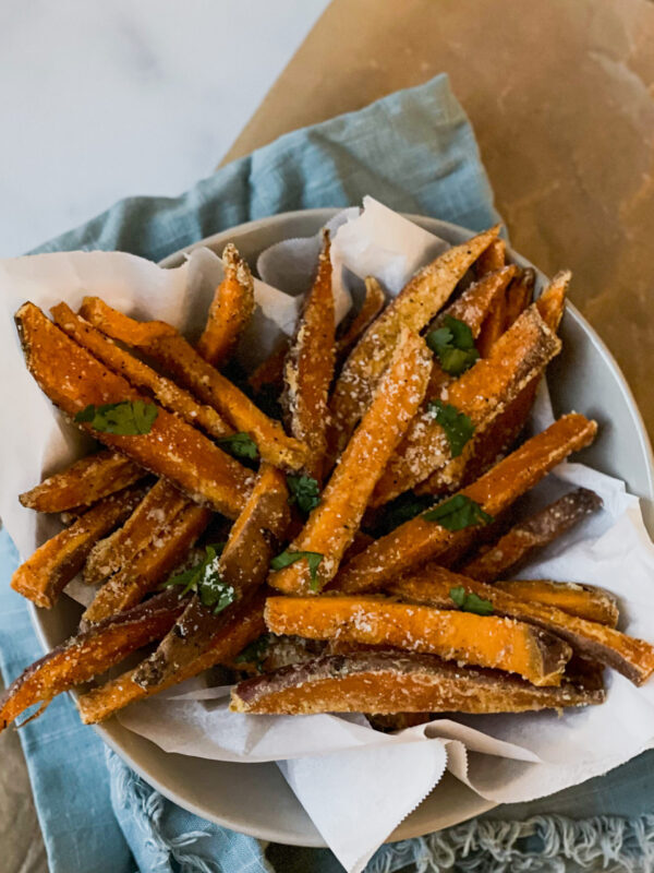 Let’s just say Jimmy and I love french fries. We might even judge restaurants by their fries, because if they have good fries, their food usually is delicious. So with trying to be healthier and offering healthier options, I decided to work on sweet potato fries recipe. So here is one of my favorite sweet potato fries recipe!!