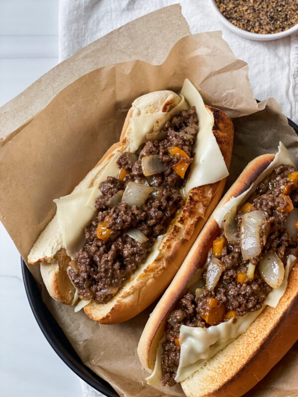 Jimmy and I love Philly cheesesteaks, but hey I am a Jersey girl and we know what a good one tastes like. So I am constantly looking to add recipes to the blog and I had ground beef on hand I wanted to use. I was originally gonna make some pasta, but honestly I didn’t feel like pasta. So I decided to really switch things up and create a new recipe. I hope you enjoy this recipe as much as we did.